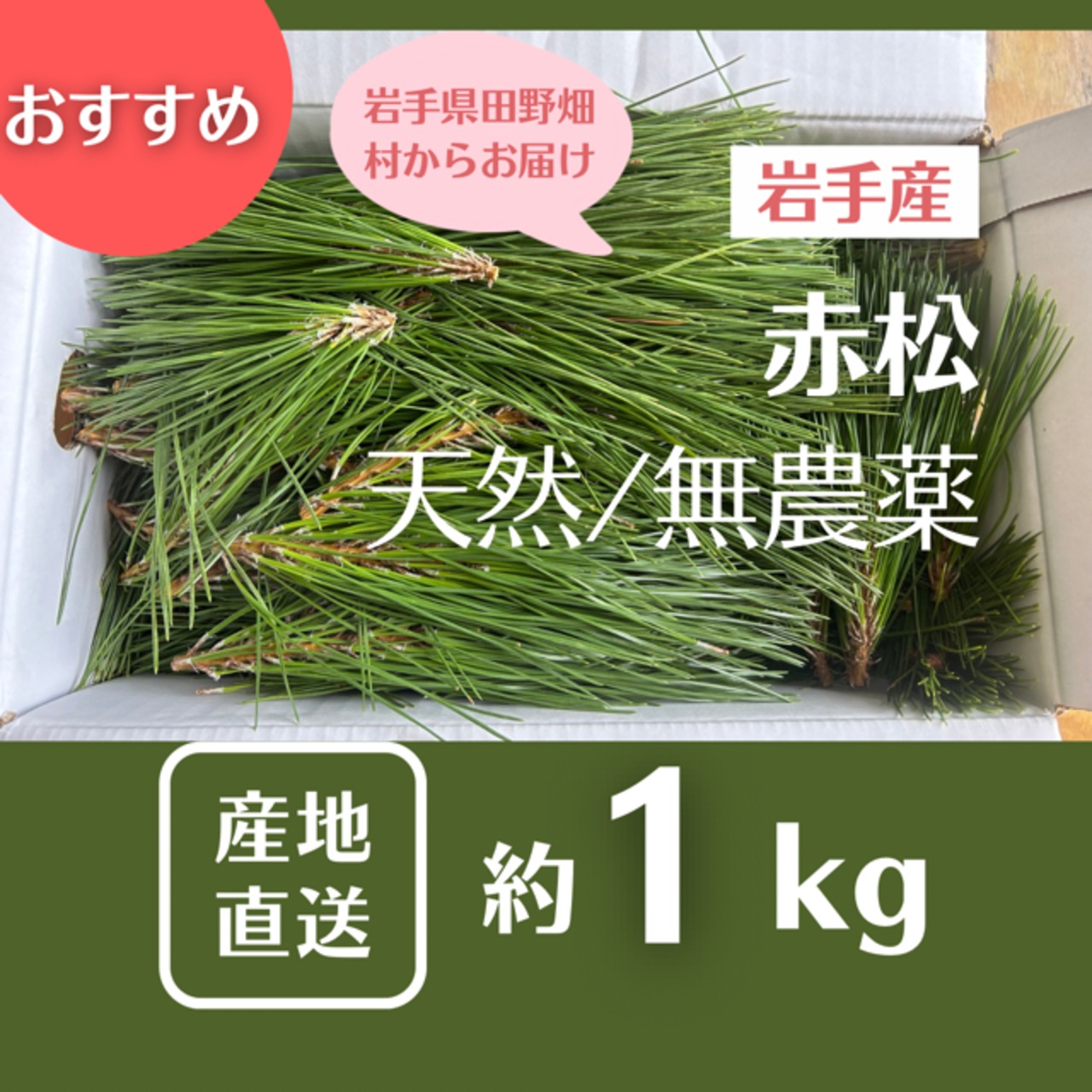 大自然の赤松群生地で天然・無農薬の赤松から採取した安心・安全な赤松葉(枝付き)となります。